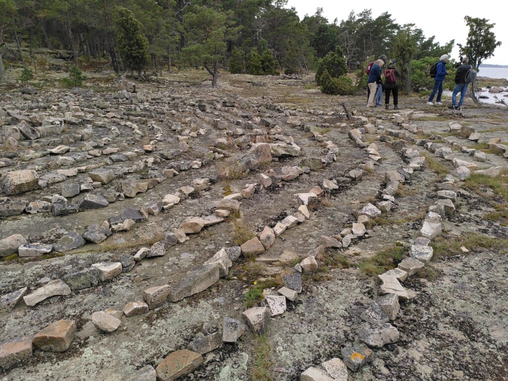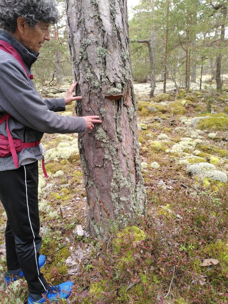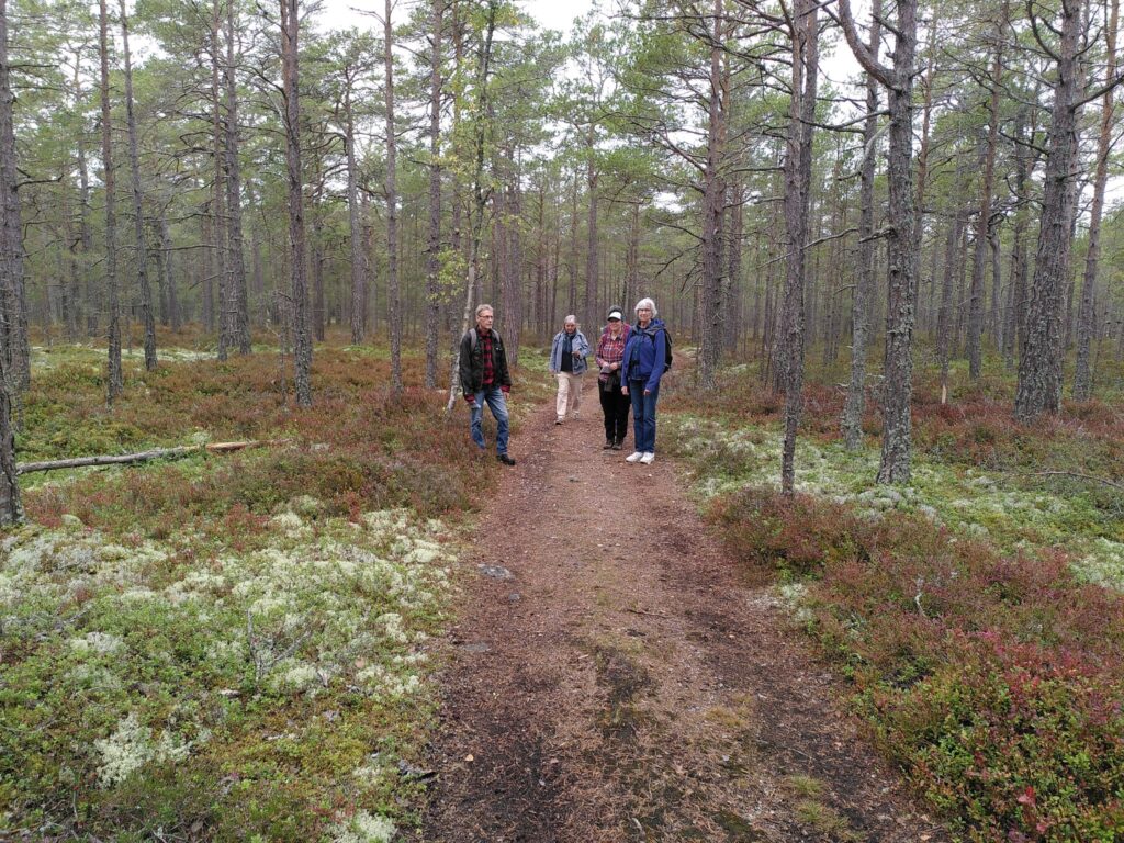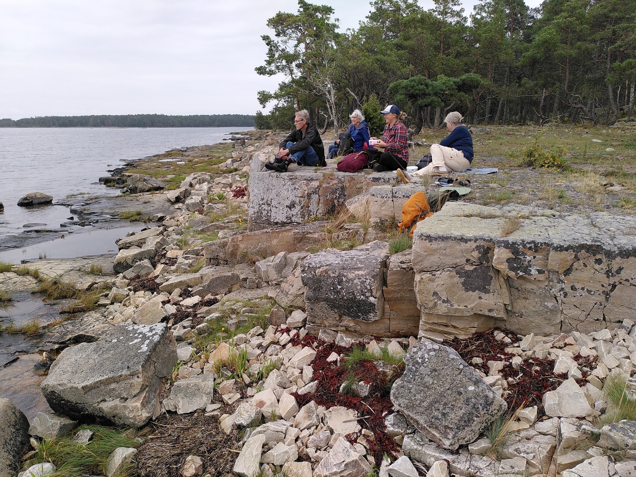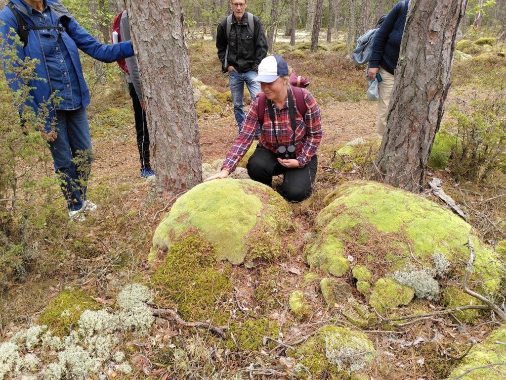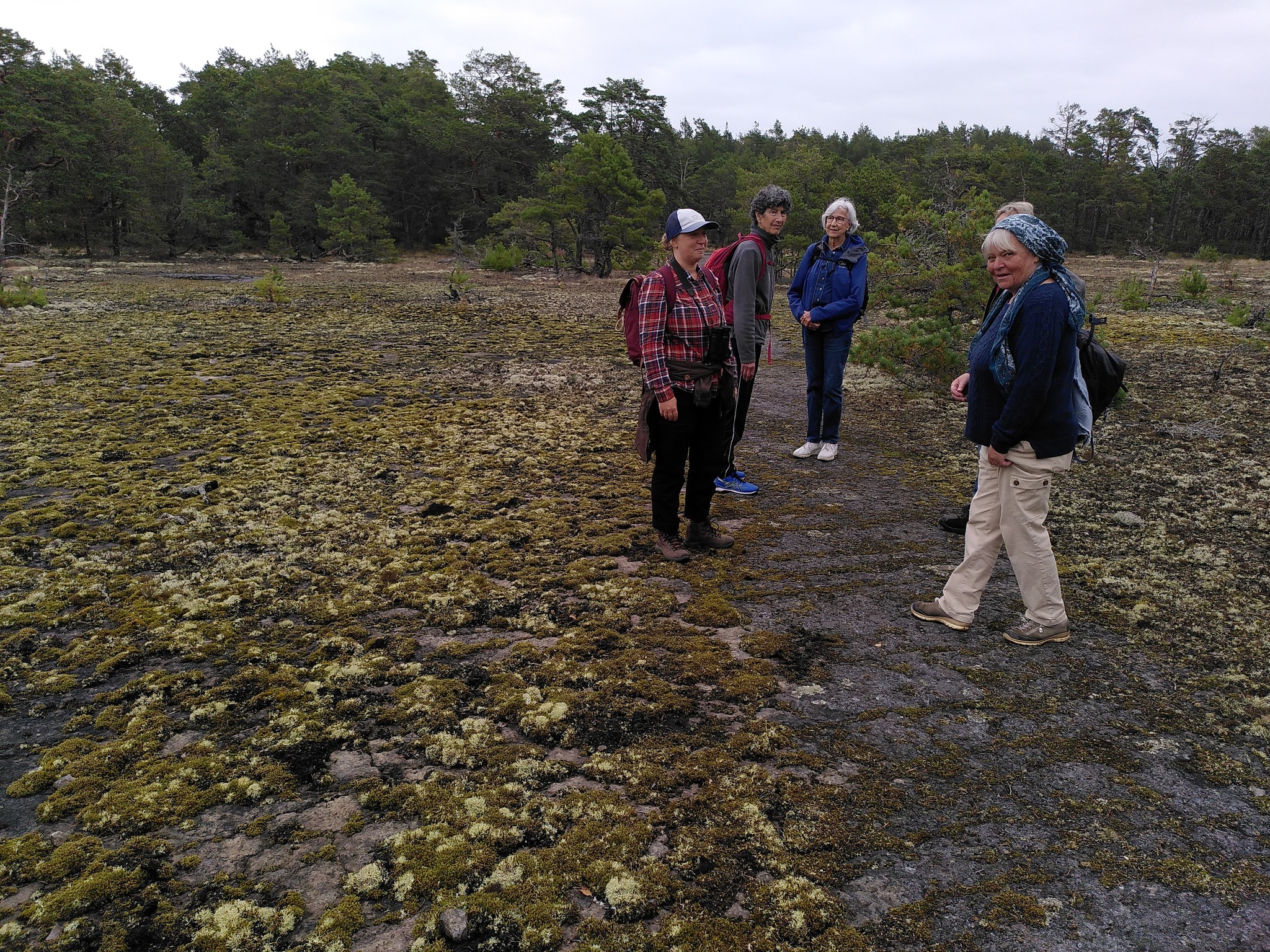 Vi var 6 personer som upplevde en härlig dag på vackra Runnö utanför Påskallavik. Daniel Blad tog oss över snabbt till den lilla byn på västra sidan av ön. Byn är en riktig skärgårdsidyll. Vi vandrade österut genom en gammal lågvuxen tallskog med gott om rödlistade talltickor som indikerar att trädet är 150-200 år. På flera ställen finns stora öppna ytor liknande alvarmark men här med sandstensbergrund. I skogen finns rikligt med stora kuddar av blåmossa som visar lång skoglig kontinuitet. Vid Nättlevik på östra sidan av ön är Blå Jungfrun i blickfånget. Vid Ebbalosudden i norr är sandsten tvärt avhuggen i en liten klint. Här finns även en stor labyrint.