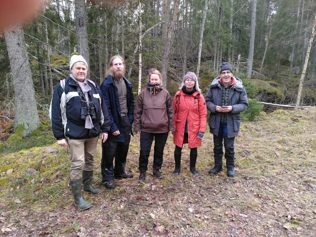 Ett glatt gäng vid inventering av ett stort skogsområde i Mönsterås kommun den 20 december. Vi hade tur med vädret och hittade en hel del rödlistade arter i skogen som är avverkningsanmäld. Bl.a. knärot, ullticka, rynkskinn, spiklav, tallticka och vedskivlav. Stora delar av området är Naturskogsartat med gott om både stående och liggande död ved vilket bäddar för stor biologisk mångfald. I avverkningsanmälan som markägaren lämnat till Skogsstyrelsen finns inga uppgifter om naturvärdena. Tyvärr är detta normen i dagens skogsbruk. Det saknas oftast uppgifter om naturvärden i avverkningsanmälningarna och skogsstyrelsen gör mycket få kontroller. Därför görs massor av olagliga avverkningar som strider mot miljöbalkens hänsynsregler och naturen utarmas alltmer. Vi kommer nu att att skriva en tillsynsbegäran till Skogsstyrelsen med information om de naturvärden vi hittat detta område.
