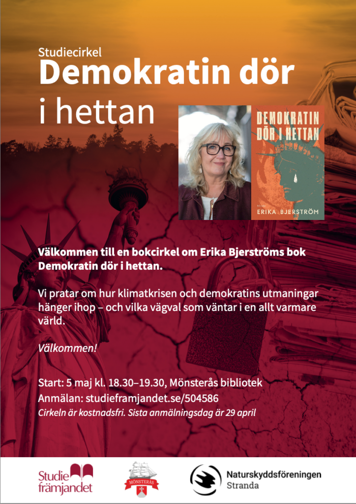 Välkommen till en bokcirkel om Erika Bjerströms bok Demokratin dör i hettan. Sista anmälningsdag 29 april.
